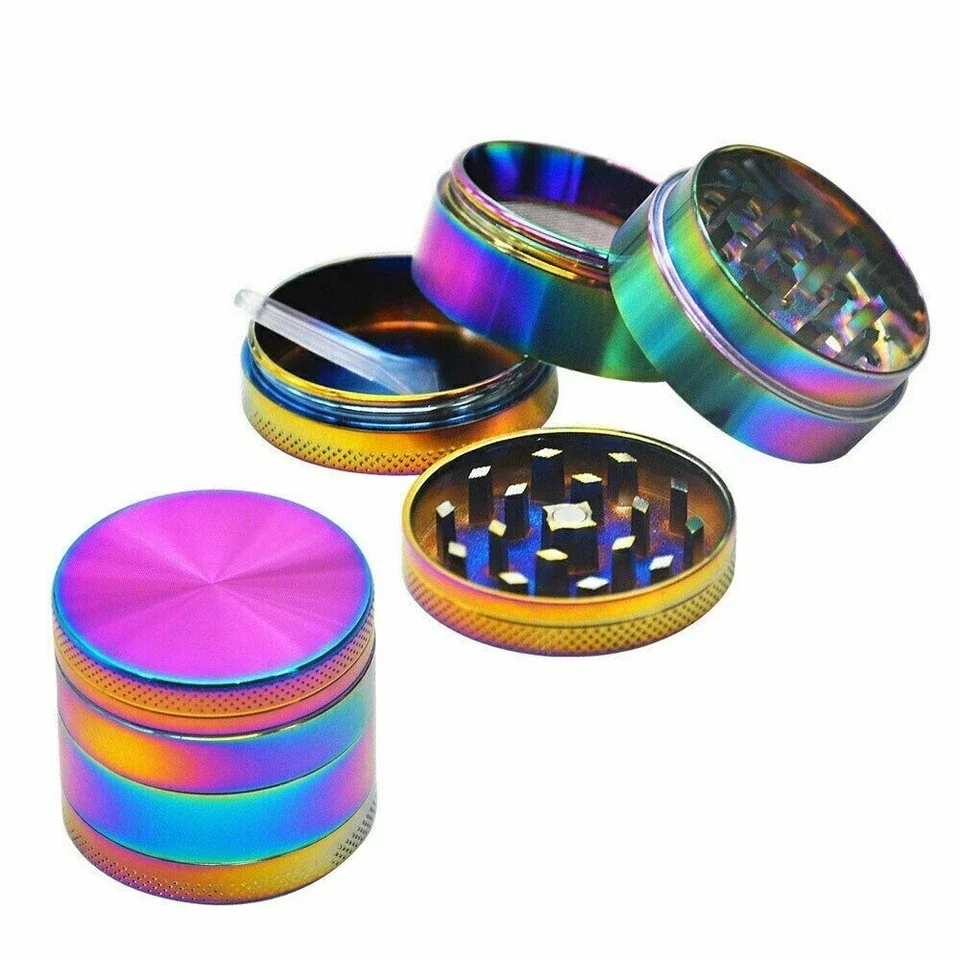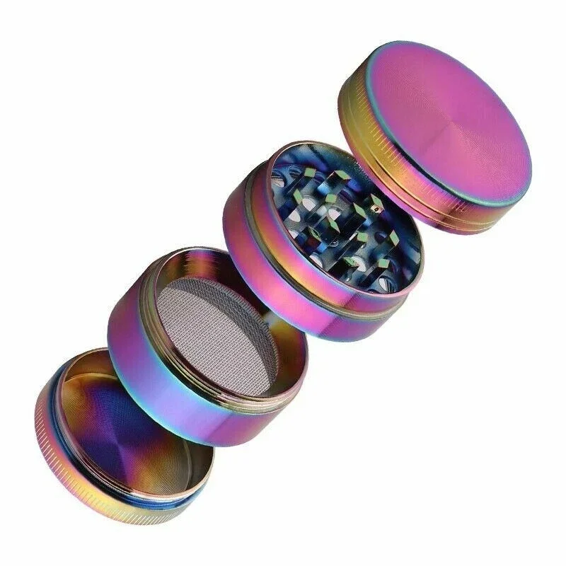 2. 50mm Rainbow Leaf Herb Grinder – 4 Piece Metal Grinder with Sharp Shark Teeth & Magnetic Lid