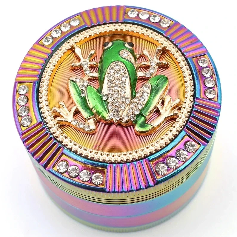1. 50mm 4-Part Rainbow Herb Grinder – Frog/Spider/Diamond Design with Magnetic Lid & Diamond Teeth
