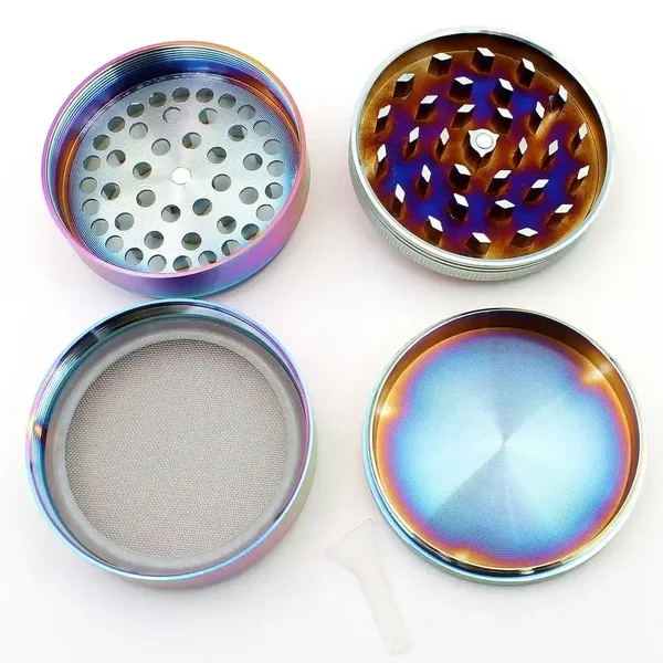 Finished in a vibrant rainbow coating, this grinder stands out while delivering top performance.