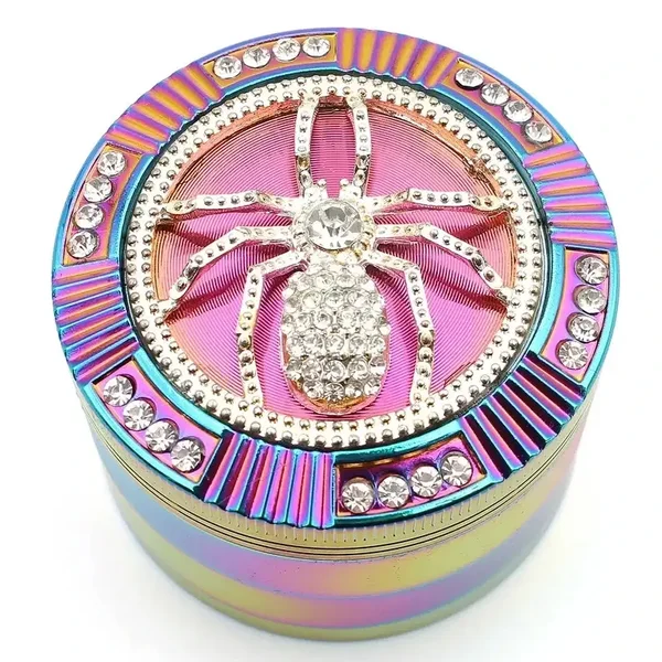 4. 50mm Rainbow Herb Grinder – 4 Piece Metal Grinder with Diamond Teeth & Magnetic Top (Frog/Spider/Diamond Designs)