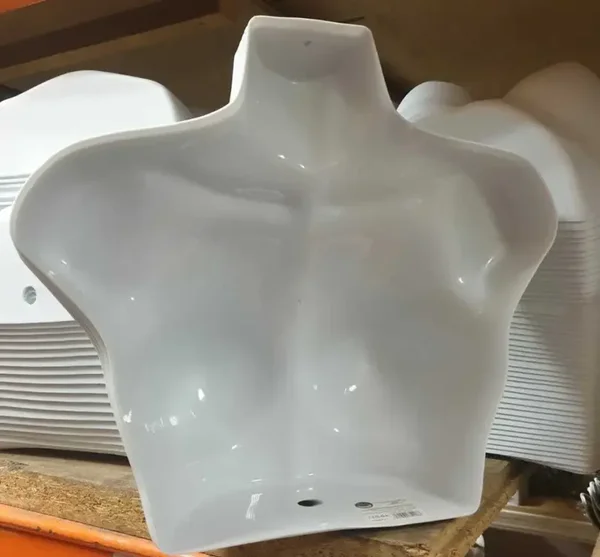 Made from durable lightweight plastic, this mannequin is easy to hang, move, and reposition as needed. The realistic torso shape enhances the look and fit of garments, helping to attract customer attention and improve presentation.