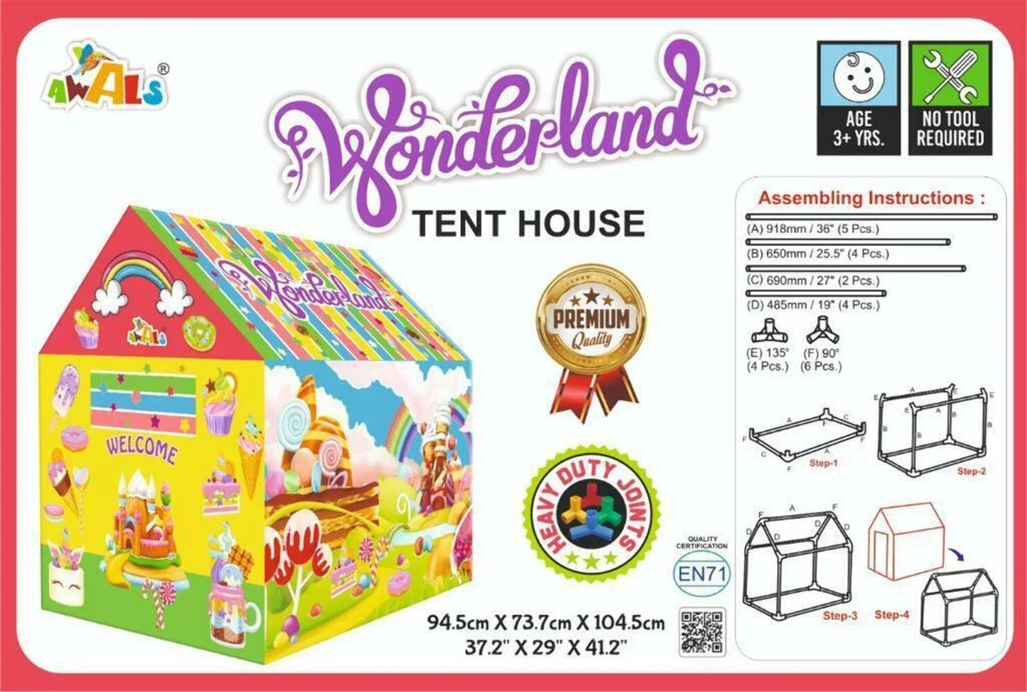 Create a fun and imaginative play space with this Large Kids Rectangle Play Tent, perfect for indoor and outdoor use. Designed with bright and playful themes like Back to School, Wonderland, and Rainbow, it provides children with their own private space to play, read, and relax.