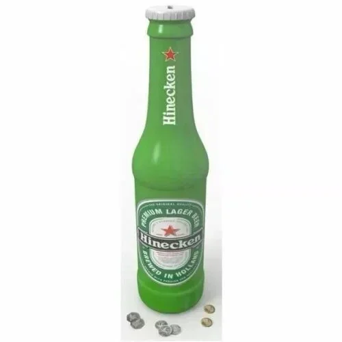 Save your coins in style with this 2FT Heineken Style Money Saving Bottle Bank, designed with a classic and recognisable bottle look. Its large size makes it perfect for storing coins while adding a unique decorative touch to your home, bar, or office.